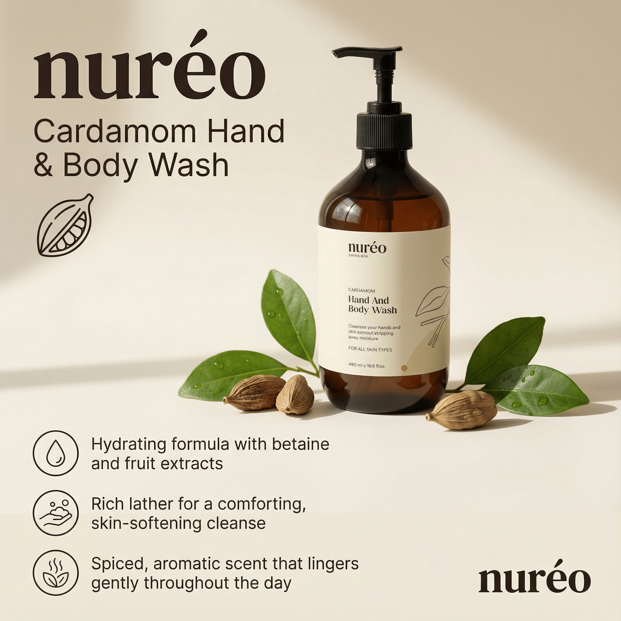 Wrap your skin in the gentle warmth of this fragrance-rich hand and body wash, delicately scented with cardamom and soft spices.